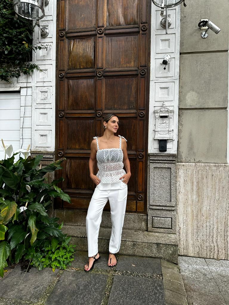 Blusa de Crepe/Poá, confeccionado em tecido de Crepe Seda. Seu caimento proporciona conforto e liberdade de movimentos. Tem um toque macio que deixa a peça mais fluída.